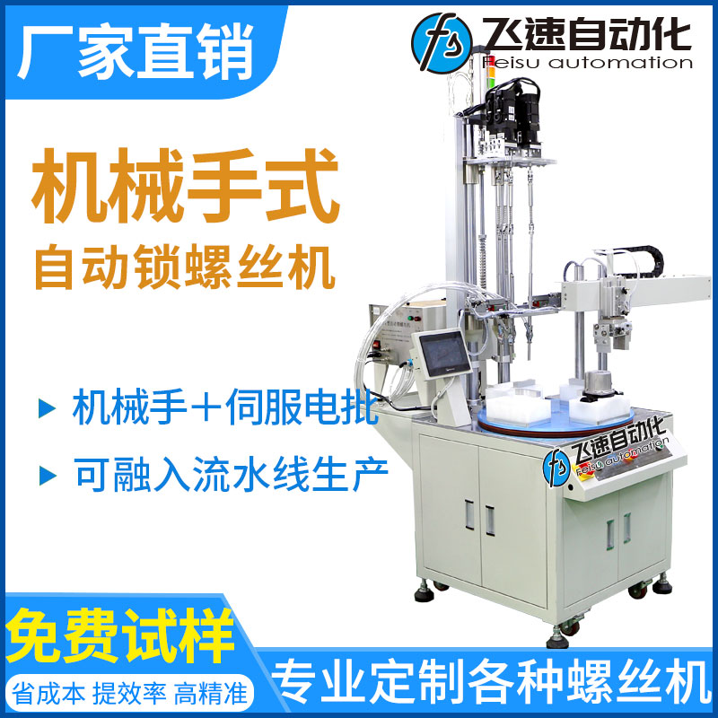 - 產品簡介: 本案例中多軸轉盤機械手式自動鎖螺絲機采用高效伺服擰緊系統鎖付,伺服電機驅動,運轉速度更快,并能通過觸摸屏任意調整每個電機的扭力值。對于鎖付細節有特殊要求的產品,如汽車發動機及零部件裝配、電子產品裝配、交通工具及零部件、壓縮機、儀表、泵、閥門等,都能適用。